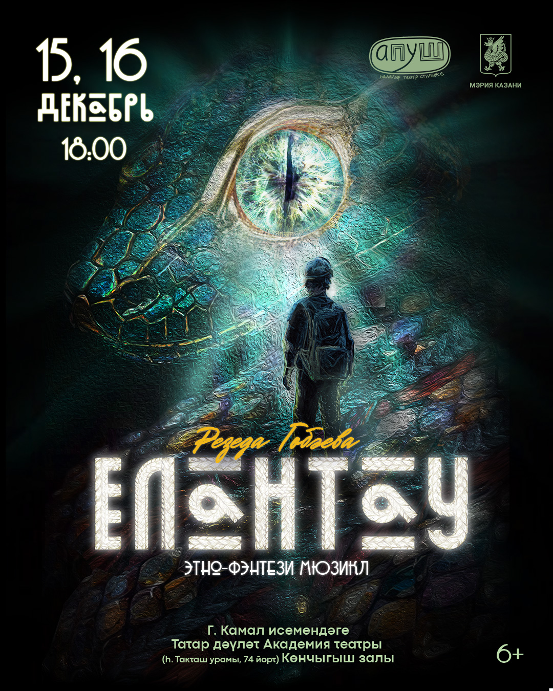 15, 16 декабрь 18:00 сәгатьтә «Апуш» татар балалар театр студиясе «Елантау» этно-фэнтези мюзиклын тәкъдим итә.
