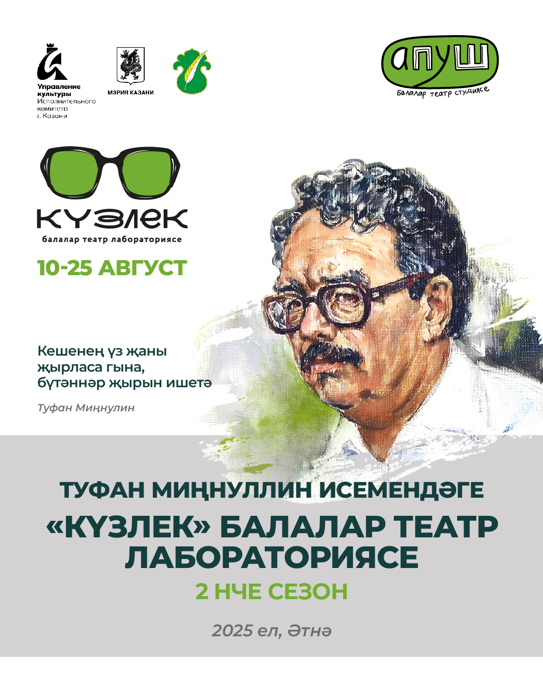 10-24 август көннәрендә Туфан Миңнуллин исемендәге «Күзлек» балалар театр лабораториясе беренче тапкыр лагерь форматында Татарстанның Әтнә районында уза. «Күзлек» лабораториясе күренекле драматургның тууына 90 ел булуга багышлана.